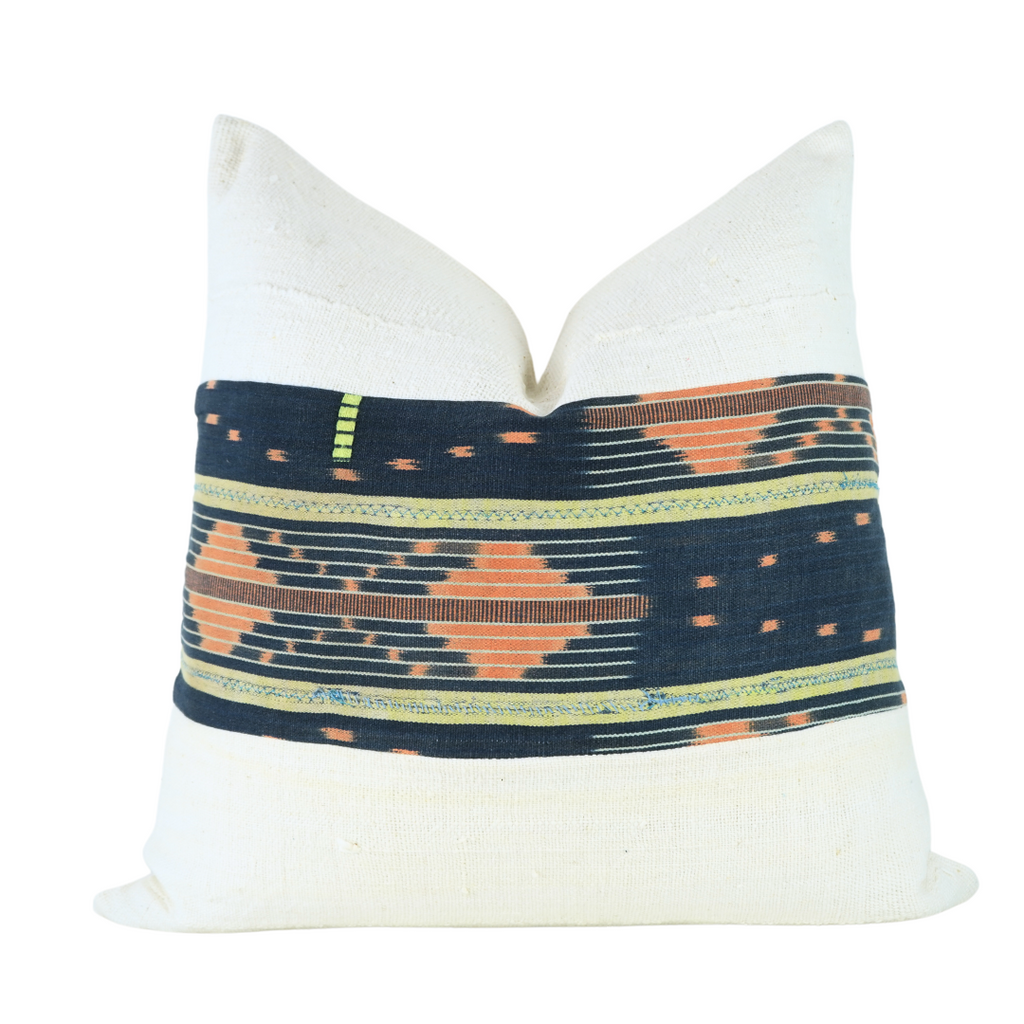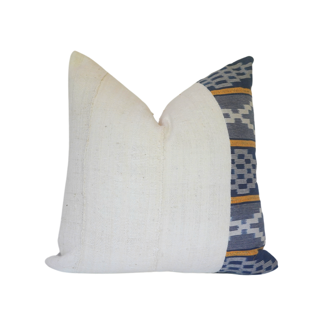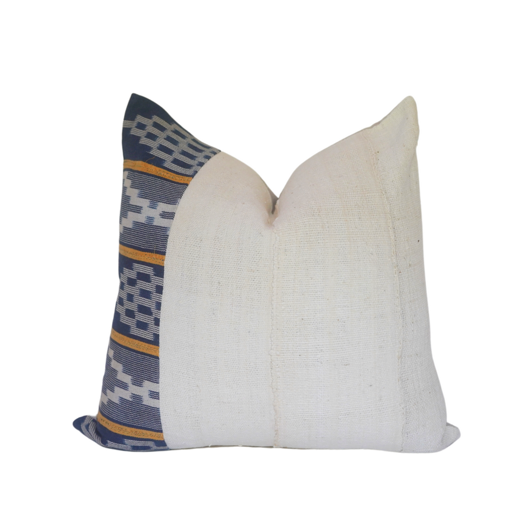 Mixed White Mudcloth and Narrow Stripe Indigo