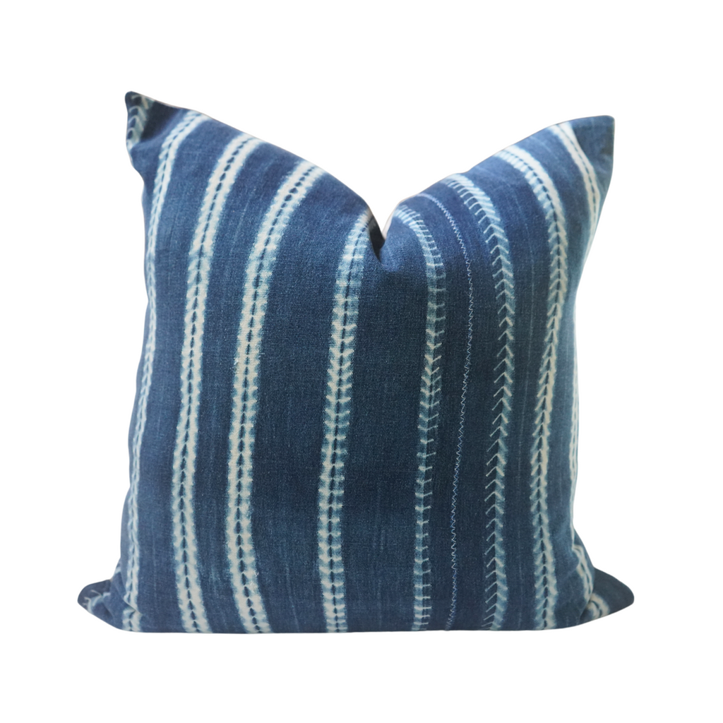Mixed White Mudcloth and Narrow Stripe Indigo